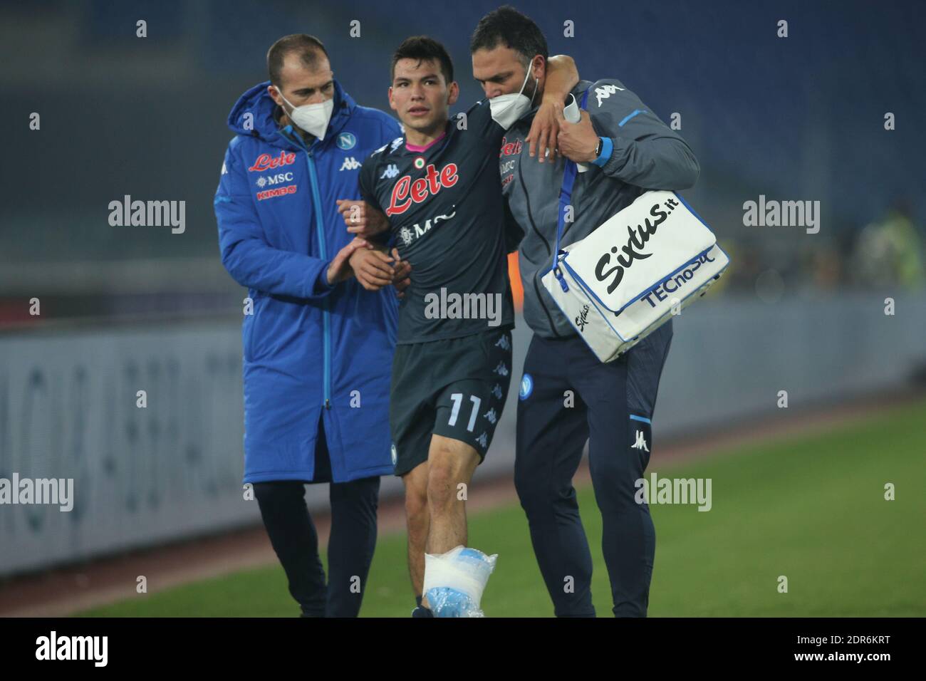 Hirving Lozano Von Neapel Verlasst Das Feld Verletzt Wahrend Der Italienischen Meisterschaft Serie A Fussballspiel Zwischen Ss Lazio Und Ssc Neapel Am 20 Dezember 2020 Im Stadio Olimpico In Rom Italien