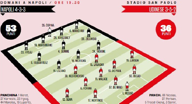 Napoli Udinese Le Probabili Formazioni Di Gazzetta Solo Due Ballottaggi Per Gattuso Grafico