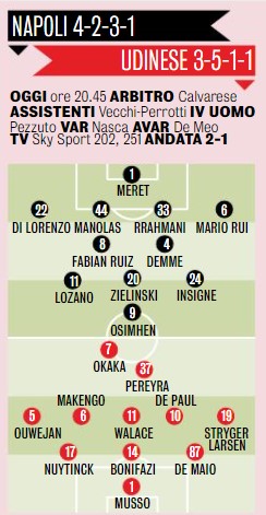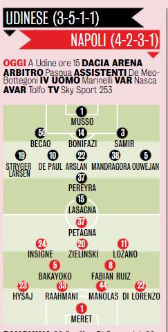 Udinese Napoli Le Probabili Formazioni Di Gazzetta Quattro Novita Per Gattuso Grafico